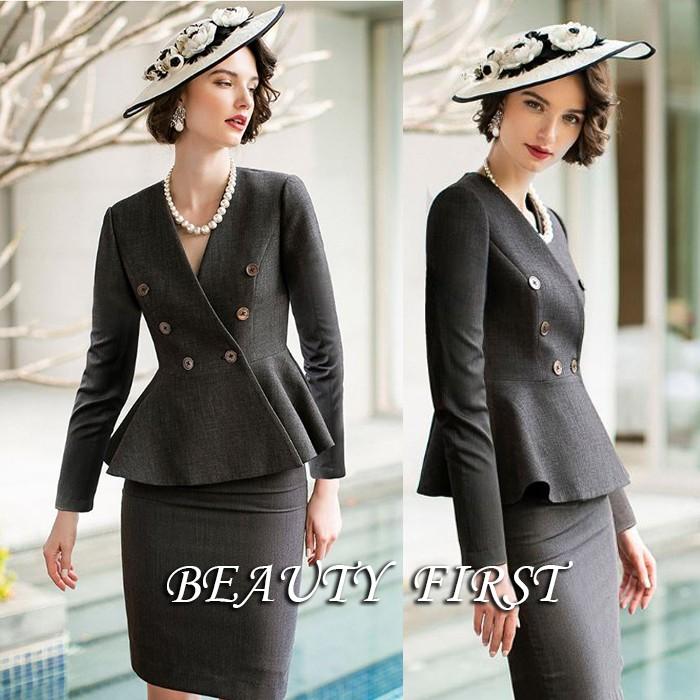 クラシカルグレー系ペプラムスーツ レディース ノーカラースーツ ペプラム調 長袖 スーツ フォーマル 仕事着 オフィス Adrge Beauty First 通販 Yahoo ショッピング